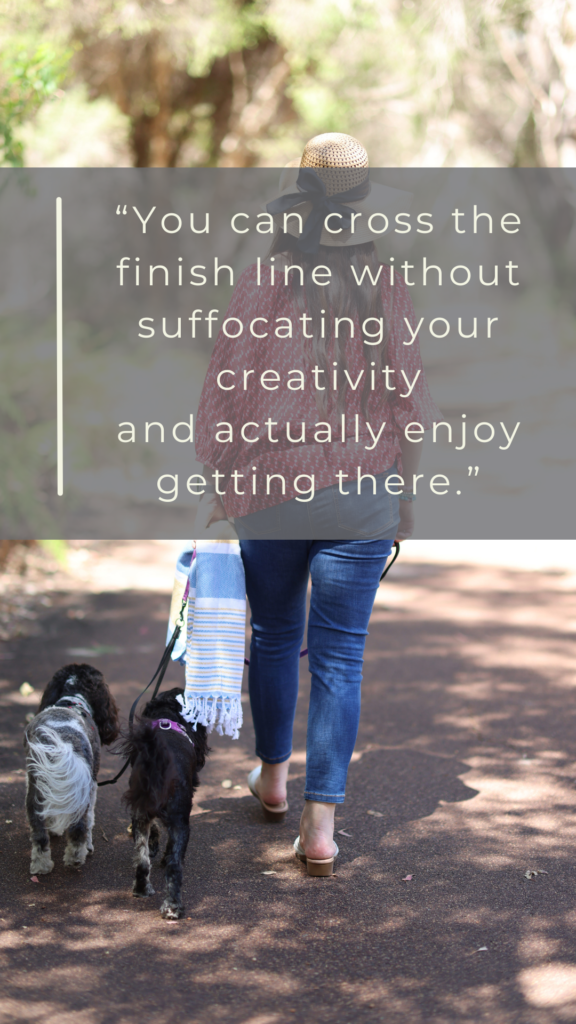 I believed that to finish one thing, I had to ignore every other spark of inspiration that came my way. It made the process feel like a hard slog, and by the time I got close to the finish line, I was too exhausted to actually enjoy it.